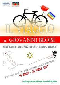 Non è certo la prima impresa che questo ciclista, abituato ad affrontare percorsi di lunghezza variabile tra i 2.500 e i 4.500 chilometri, dedica alla Memoria. Lo ha già fatto, ad esempio, lo scorso anno, quando in trentacinque giorni ha visitato dieci campi di concentramento nazisti in Europa. E ora Bloisi porterà la propria testimonianza in altri luoghi non solo di segregazione e umiliazione, come il Memoriale della Shoah di Milano (ex binario 21), Fossoli, Arcevia, Casoli e Alberobello, ma anche di rinascita, come Tze’elim, il kibbutz dove i bimbi di Sciesopoli furono rimpatriati dopo il 1948.