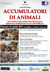 Oipa-Organizzazione Internazionale Protezione Animali sezione di Ferrara e Nucleo Guardie zoofile di Ferrara, organizzano il 1 aprile 2017 alle 13.30 (studio 626 Medica, via Renato Hirsch 14, Centro artigianale San Giorgio, Ferrara) un seminario che ha per titolo e tema gli “Accumulatori di animali”.