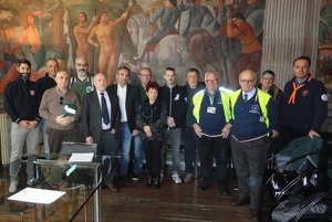 Si è svolta questa mattina, martedì 28 novembre nella sala dell’Arengo di palazzo municipale, la firma della “Convenzione tra Comune di Ferrara e Associazioni di Volontariato di Protezione Civile per attività di protezione civile nel territorio dell’Associazione Intercomunale Terre Estensi“. Nel corso dell’incontro il protocollo operativo è stato illustrato dal sindaco del Comune di Ferrara Tiziano Tagliani, dall’assessore ai Lavori Pubblici e Protezione Civile Aldo Modonesi, dall’Ingegnere capo comunale Luca Capozzi insieme ad Andrea Carletti (Ass. Fuoristrada Ferrarese, capofila associazioni) e Daniele Barbieri (presidente provinciale associazioni di Protezione civile), presenti i rappresentanti delle Associazioni di Volontariato aderenti alla convenzione.