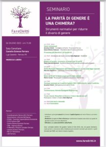La Parità di Genere è una chimera? Un seminario di Fare Diritti sugli strumenti normativi per ridurre il divario di genere. Ferrara, Castello Estense, 6 giugno 2023, ore 15,30.