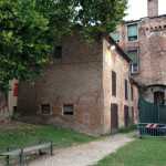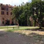 Sette anni fa, duranti i lavori di recupero dell’area che si presentava come incolta sterpaglia, venne estirpato qualche albero e incomprensibilmente demolita una graziosa minuscola cappelletta ottocentesca. E’ rimasto però un vecchio edificio in mattoni, attualmente utilizzato come ricovero di attrezzi e magazzino comunale. Potrebbe essere trasformato in un locale pubblico di ospitalità, con caffetteria e magari un piccolo bookshop o uno spazio multimediale, analogamente a quanto si è fatto con gradevole effetto nel giardino un tempo trascurato di palazzo Schifanoia, ora rifiorito come luogo di sosta e intrattenimento.