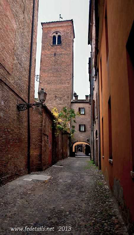 A incorniciare il cortile – pronto a divenir giardino – ci sono l’abside della chiesa di San Paolo e la torre dei Leuti, che lo osserva dall’alto dei suoi 30 metri. Proprio la torre merita una digressione. E’ l’ultima sopravvissuta delle 32 che nel tredicesimo secolo caratterizzavano il centro storico della città. Incerta è la sua data di edificazione, fonti accreditate la fanno risalire addirittura al nono secolo: come tale sarebbe, fra quelli ancora esistenti, l’edificio più antico di Ferrara, donato dal marchese Nicolò II ai monaci della chiesa per farne il loro campanile. Rappresenta certamente una curiosità, non solo per i turisti. Ed è potenzialmente un’attrattiva. Andrebbe verificata e possibilmente trovata la maniera per renderla almeno parzialmente accessibile. Se addirittura si potesse salire, offrirebbe certamente un suggestivo scorcio sui monumenti cittadini.