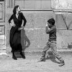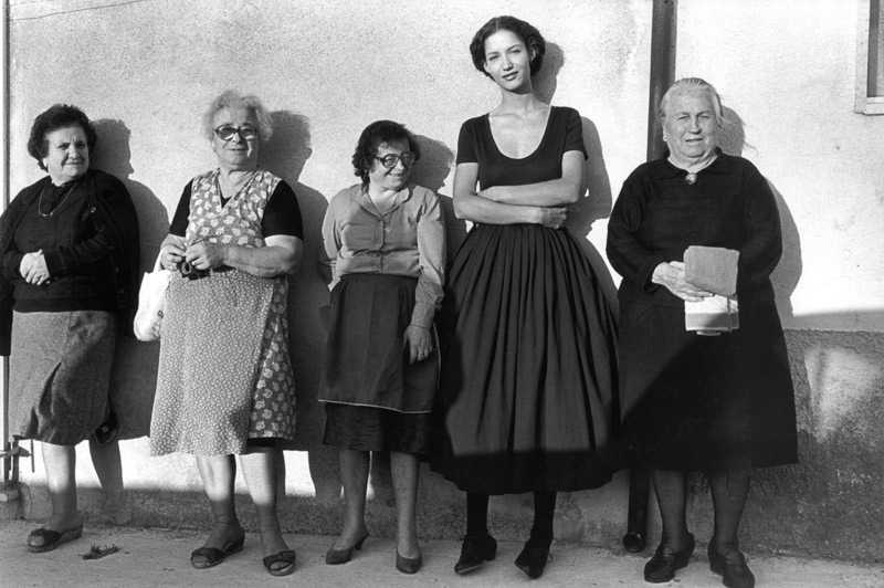 Poveri, ma belli. O forse soprattutto belli, in contesti fascinosamente poveri. Come succede con lei – giovane, sexy, elegante – davanti a un banco di frutta al mercato. Oppure un’altra fanciulla carina e flessuosa, in abito nero accanto a una donna siciliana in abiti scuri tradizionali. O ancora un’altra donna, bella e intensa, che passa davanti a un gruppo di uomini con le catenine del rosario al collo come ciondoli.