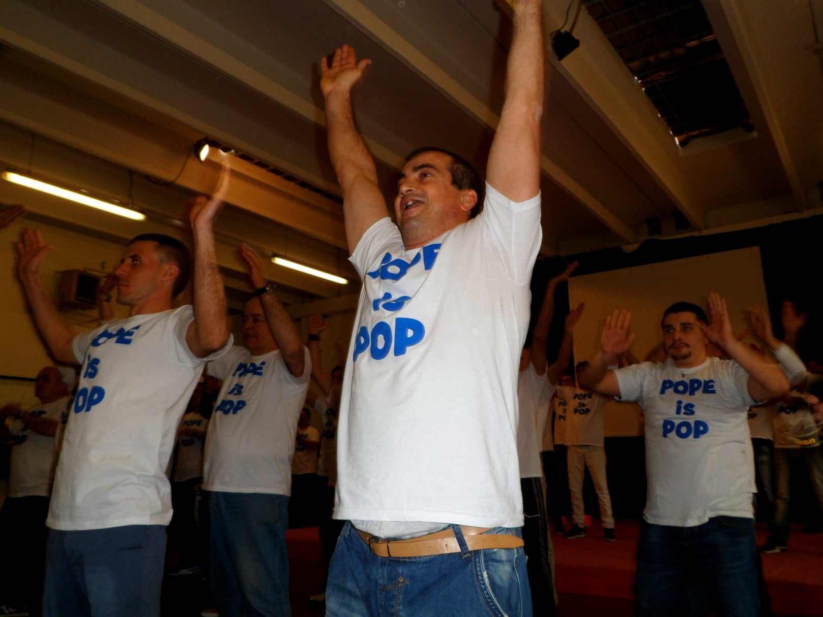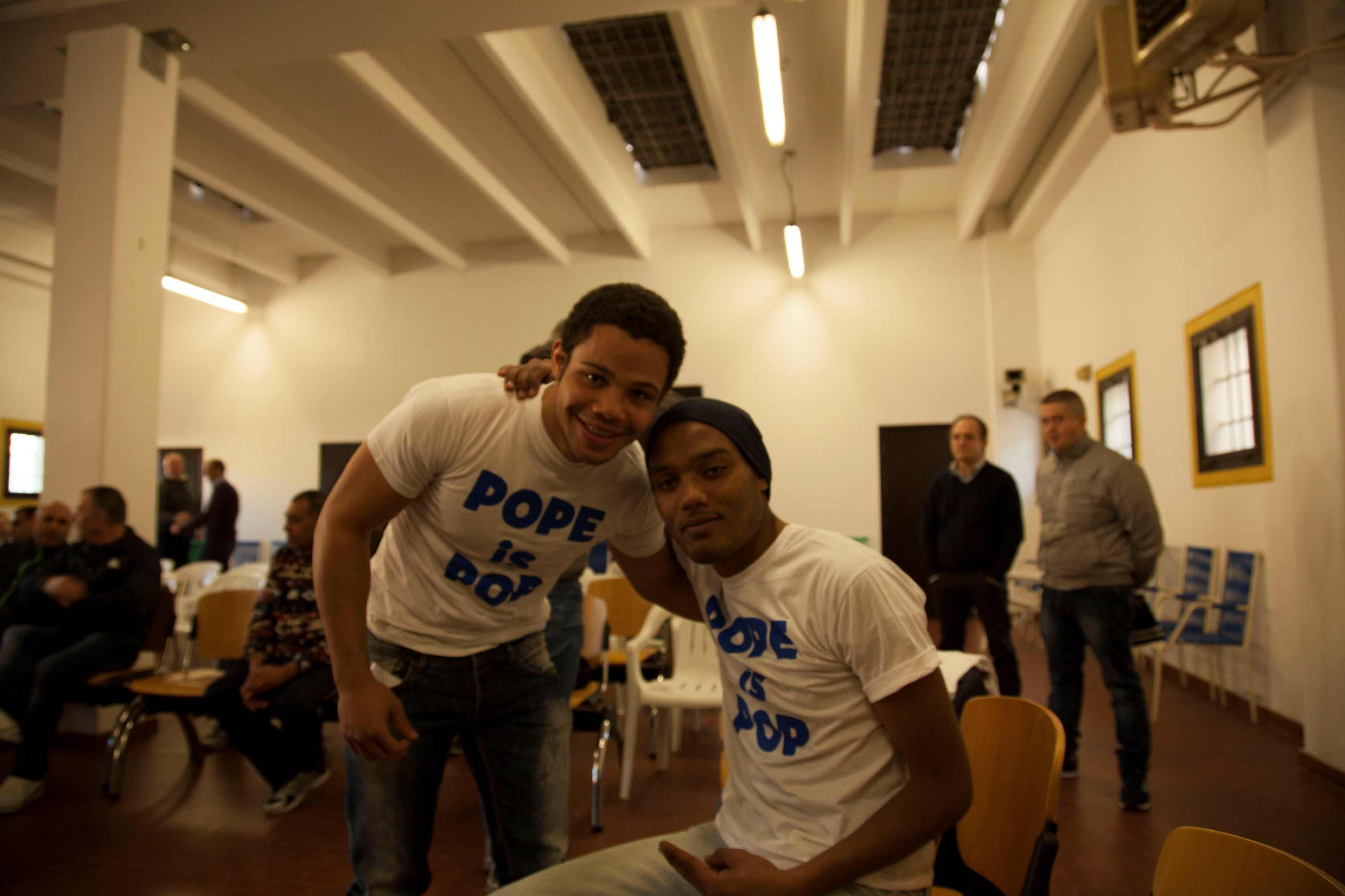 Qualcuno guarda per terra contando il tempo, qualcun altro saltella a ritmo alzando le braccia al cielo. Qualcuno ha la faccia giovane e sorridente, qualcun altro ha il volto segnato da una vita dura e non è più giovanissimo. Hanno tutti una maglietta bianca con la scritta “Pope is Pop” e l’effetto è straordinario e coinvolgente. Parliamo dell’evento storico che si è svolto questa mattina alla Casa Circondariale “Costantino Satta” di Ferrara: il primo flash mob svoltosi in un carcere maschile. Guidati da Igor Nogarotto, creativo e ideatore del progetto, e dalla coreografa Roberta Micci, settanta detenuti del carcere ferrarese hanno ballato sulle note della canzone “Pope is Pop”, composta da Nogarotto, per celebrare il Giubileo dei carcerati, festeggiato lo scorso 6 novembre a San Pietro alla presenza di oltre mille detenuti.
