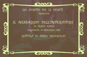 Se avete letto fin qui, consiglio la visione e l’ascolto del magnifico racconto di Franz Kafka Il messaggio dell’imperatore, tradotto dal tedesco per Periscopio da Francesco Tosi, lettura di Fabio Mangolini. [guarda la videolettura]