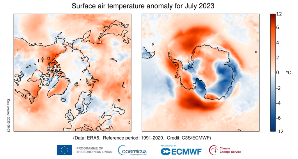 Il mese di luglio che ci siamo lasciati alle spalle è cominciato con un giorno, poi due, poi tre. Infine quattro record di temperatura massima su base giornaliera a livello globale, dal 3 al 6 luglio. È poi proseguito con una settimana, poi due, poi tre. Infine, tutto il mese che si è appena concluso è stato da record: luglio 2023 è stato il mese più caldo mai registrato sul nostro pianeta, la Terra, da quando sono cominciate le rilevazioni ufficiali.