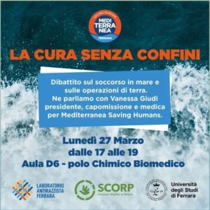L’evento è in collaborazione con SISM Ferrara (Sindacato italiano Studenti in Medicina), SCORP e Laboratorio Antirazzista dell’Università di Ferrara.