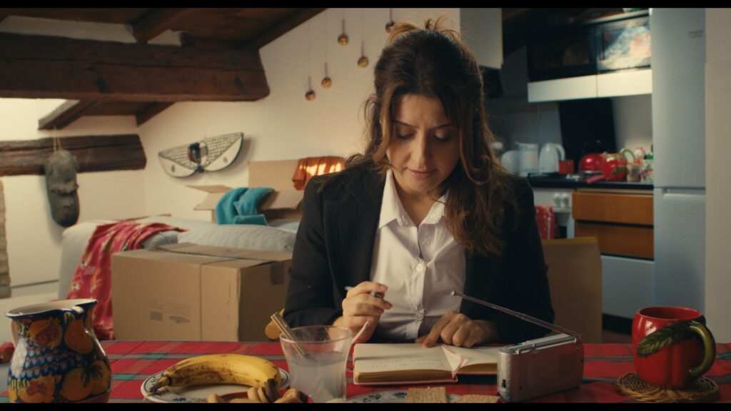 Alex (Andrea Bosca), infatti, l’ex fidanzato violento, facilmente irritabile e manesco, continua a tormentarla nella totale indifferenza delle istituzioni, costringendola a cambiare città per scappare da lui, dalle sue pressioni e minacce. La giovane decide così di lasciare la sua casa in Piemonte e trasferirsi nella vecchia abitazione della nonna a Ferrara. Riconosciamo le vie del centro storico e i suoi ciottoli, i campanelli dorati, la libreria che vende libri usati dove si trovano bellissime sorprese. Mentre la nostra Agata, imbottita di colorate pillole omeopatiche, si dirige all’edificio che ospita il call center dove lavora, senza alcuna prospettiva e inascoltata da clienti esasperati.