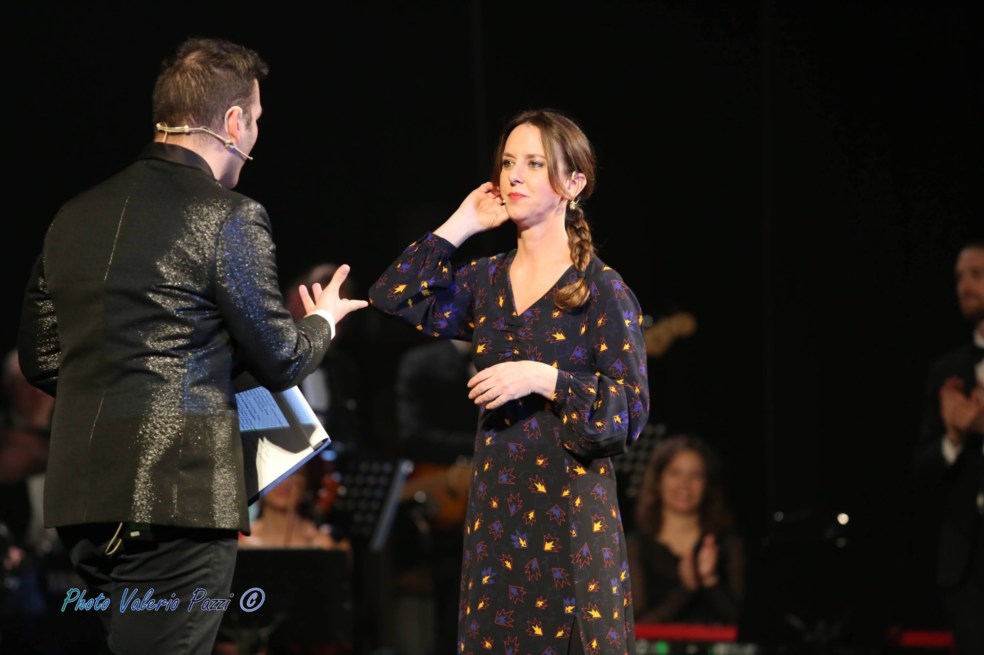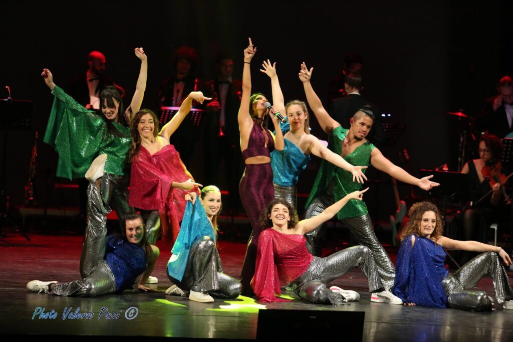 Sul palco prendono vita le coreografie e le musiche di “Matilda”, “What a Feeling”, Stayin’ Alive”, “Disco Inferno”, “City of Stars”. La Ferrara Film Orchestra, pur con un suono che sovrasta un po’ troppo le voci, sorprende ancora. C’è energia, pathos.