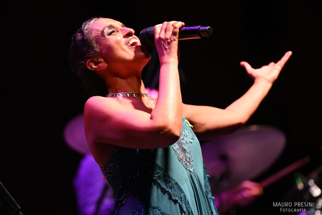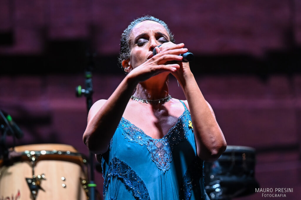 Nel concerto, organizzato da Emilia Romagna Festival a Comacchio, Noa ha presentato brani del suo repertorio (There must be another way, Wildflower, I don’t know, Today, Now forget, Ma-ma improvisation, Child of man, Keren Or) e, in prima nazionale, quattro brani del suo nuovo album che uscirà ai primi del 2025 (Water, To all the broken hearts, I’m yours e Fear and the river. Quest’ultima canzone, ispirata alla poesia di Khalil Gibran [1], è un vero e proprio invito a non aver paura del cambiamento; mentre I’m yours esprime tutto l’altruismo della cantante consapevole di mettere la propria arte a disposizione della pace e dell’amicizia fra i popoli).