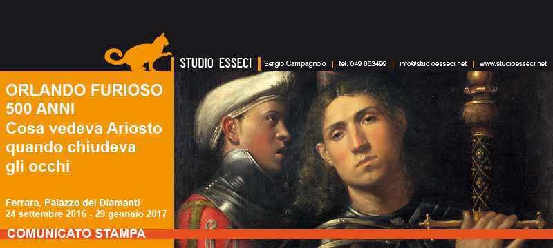 Domenica 29 gennaio si è conclusa la mostra Orlando furioso 500 anni. Cosa vedeva Ariosto quando chiudeva gli occhi, organizzata a Palazzo dei Diamanti dalla Fondazione Ferrara Arte e dal Ministero dei beni e delle attività culturali e delturismo, in occasione del quinto centenario della prima edizione del poema. La mostra, a cura di Guido Beltramini e Adolfo Tura, affiancati da un comitato scientifico internazionale di autorevoli storici dell’arte e della letteratura, ha voluto evocare le fonti visive che insieme a quelle letterarie hanno ispirato Ariosto nella redazione di questa pietra miliare della letteratura del Rinascimento. I capolavori dei più grandi artisti del periodo – da Mantegna a Leonardo, da Botticelli a Raffaello e Tiziano – oltre a sculture antiche e rinascimentali, miniature, arazzi, armi, libri e oggetti preziosi hanno fatto rivivere il fantastico mondo cavalleresco del Furioso e dei suoi paladini.