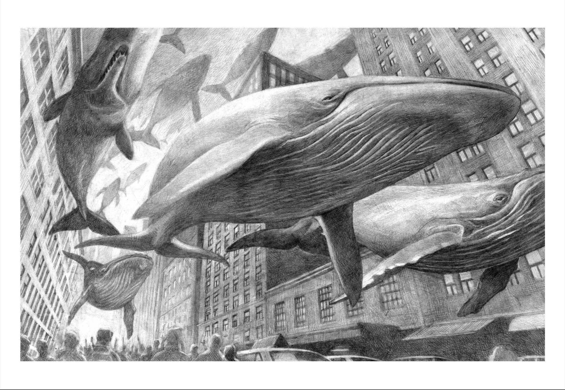 E se un giorno, alzando gli occhi al cielo che si è oscurato, vedessimo decine di placide balene? Che reazione avremmo? Meraviglia, inquietudine, paura? Restare a osservare, cercare di comprendere cosa sta succedendo o agire per risolvere la situazione?