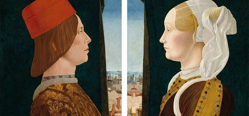I visitatori possono seguire la carriera di Ercole attraverso oltre venti opere (di gran lunga il numero maggiore mai riunito), dagli esordi alla compiuta maturità. Tra le prove giovanili sono presenti gli scomparti del polittico Griffoni, eseguito a fianco di Francesco del Cossa, e i luminosi Ritratti di Giovanni II e Ginevra Bentivoglio che arrivano da Washington, una commissione che sancisce il prestigio raggiunto nella vicina Bologna. Le sale dedicate agli ultimi anni, quando Ercole dopo il rientro in patria era divenuto pittore di corte degli Este, sono impreziosite da quattro dipinti di rara raffinatezza, grazie al prestito eccezionale concesso dalla National Gallery di Londra: oltre al dittico che appartenne alla duchessa Eleonora d’Aragona, la Raccolta della manna e l’Istituzione dell’Eucarestia, forse provenienti da una chiesa ferrarese. Dal Kimbell Art Museum di Forth Worth giunge la tavola con Porzia e Bruto che sarà ricongiunta alla compagna con Lucrezia, Bruto e Collatino della Galleria Estense di Modena.