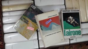 Copertine delle edizioni originali di Bassani alla libreria Eccelibro” di Ferrara (foto Giorgia Mazzottii)