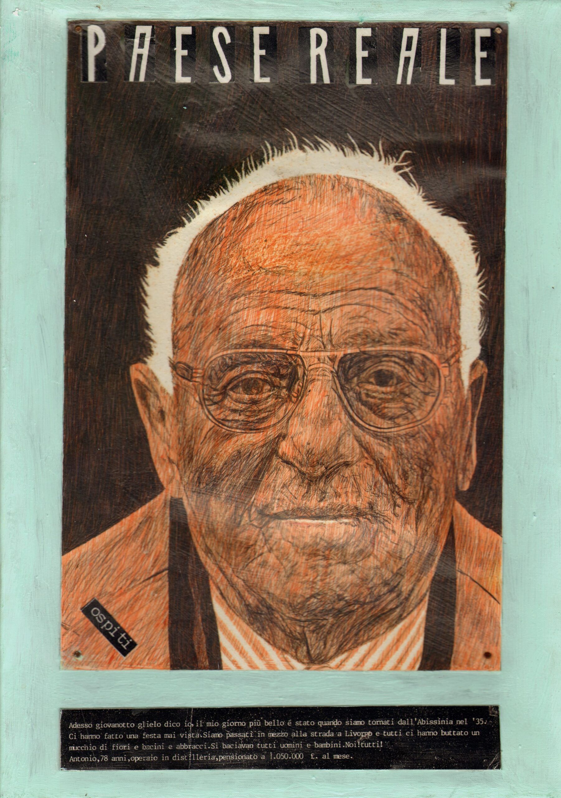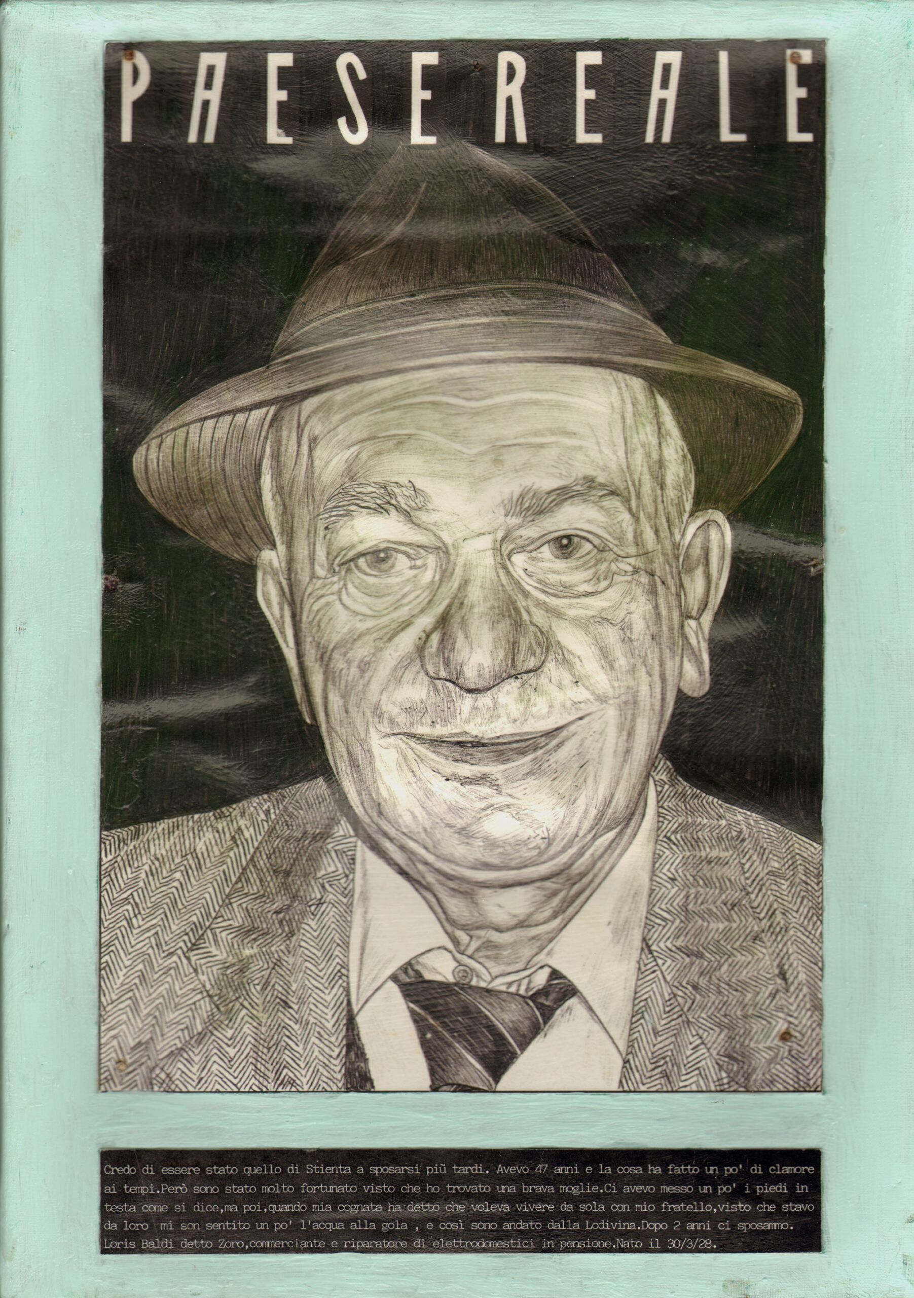 Ma di cosa e di chi è fatto veramente il Paese Reale? Se ci pensi un attimo, il Paese Reale siamo Noi, siamo Noi presi Uno a Uno. L’artista polesano Piermaria Romani si è messo in strada e ha pensato a una specie di censimento. Ha incontrato di persona e illustrato il Paese Reale. Centinaia di ritratti e centinaia di storie.