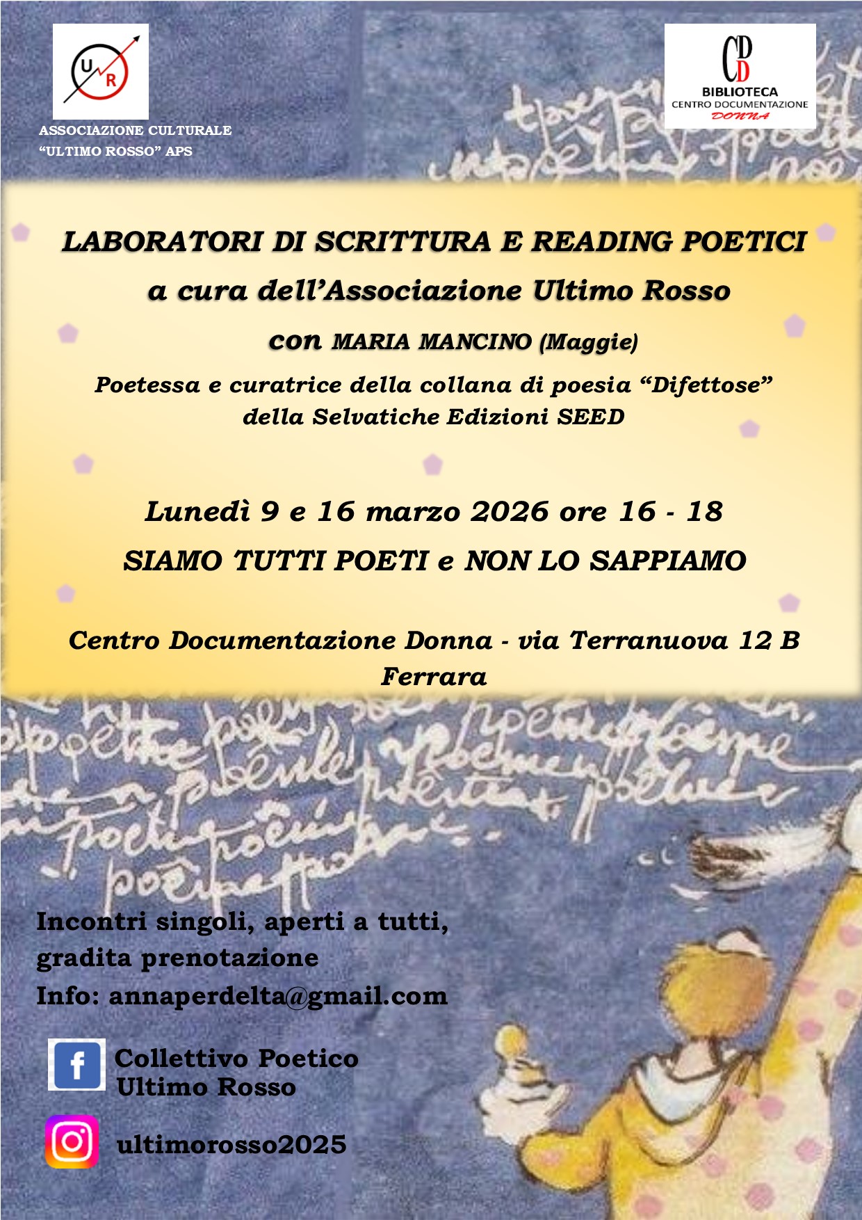 Parole a capo” è una iniziativa dell’Associazione culturale “Ultimo Rosso”.
