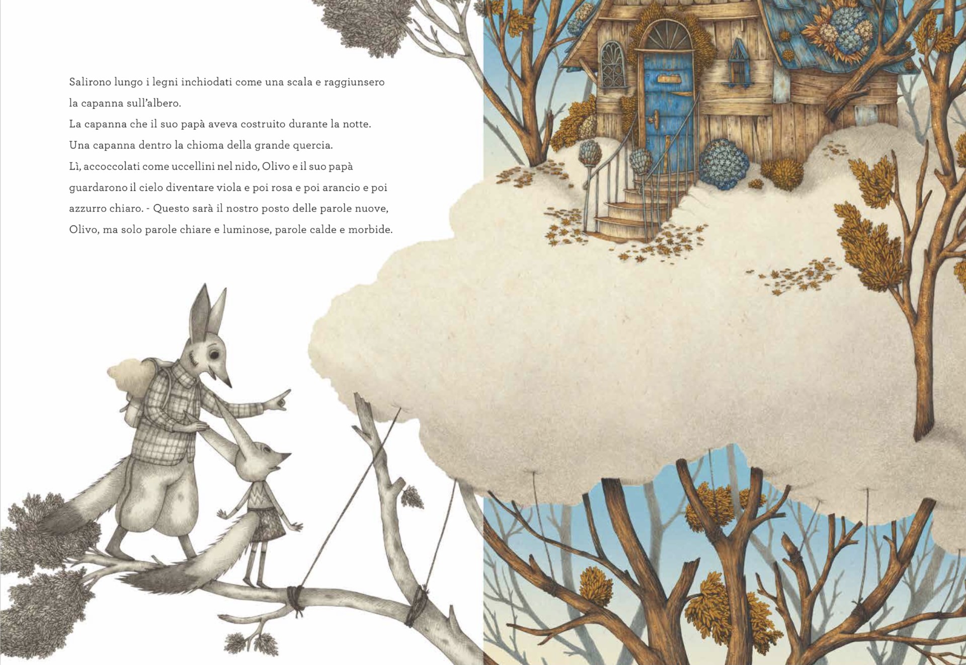 “Seduto lì in cima, Olivo capì che anche se adesso erano in due, lui e il suo papà, loro due e basta, nell’adesso e nel sempre sarebbero stati in tre. Loro tre. Per sempre”.