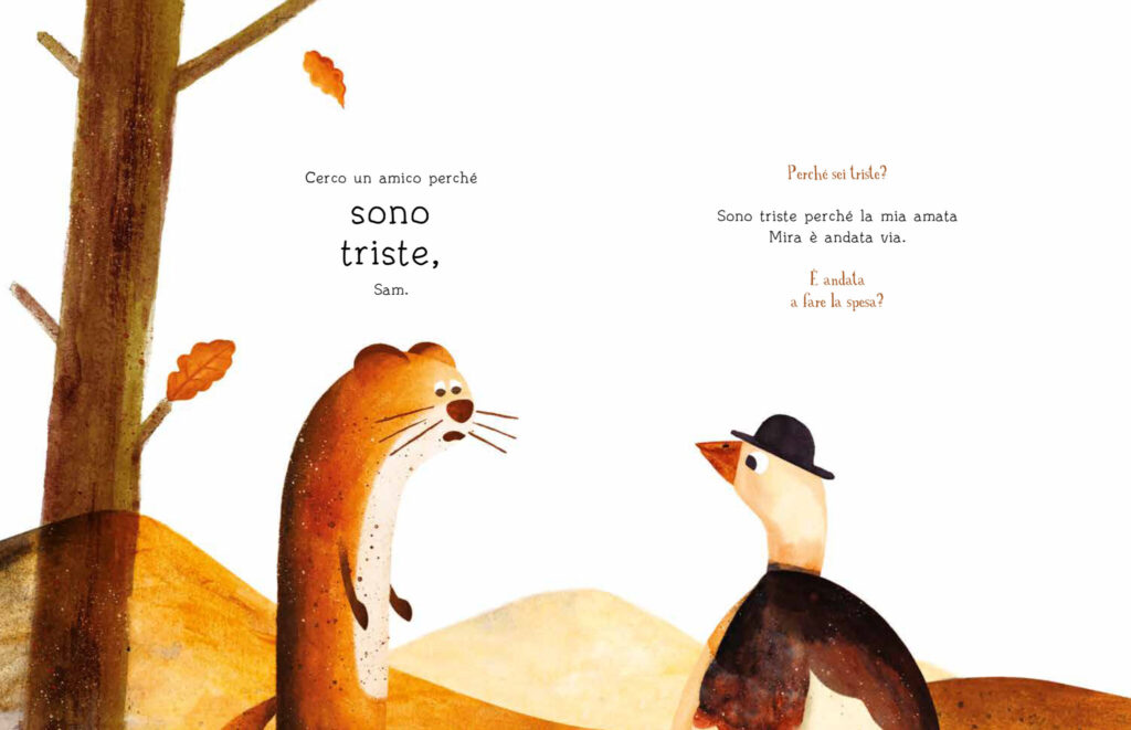 Così, quando Nic incontra l’anatra Sam, gli confida il suo grande rammarico. Mira gli manca tanto, tantissimo, era davvero gentile e aveva un profumo così buono, come quello di un salsicciotto.