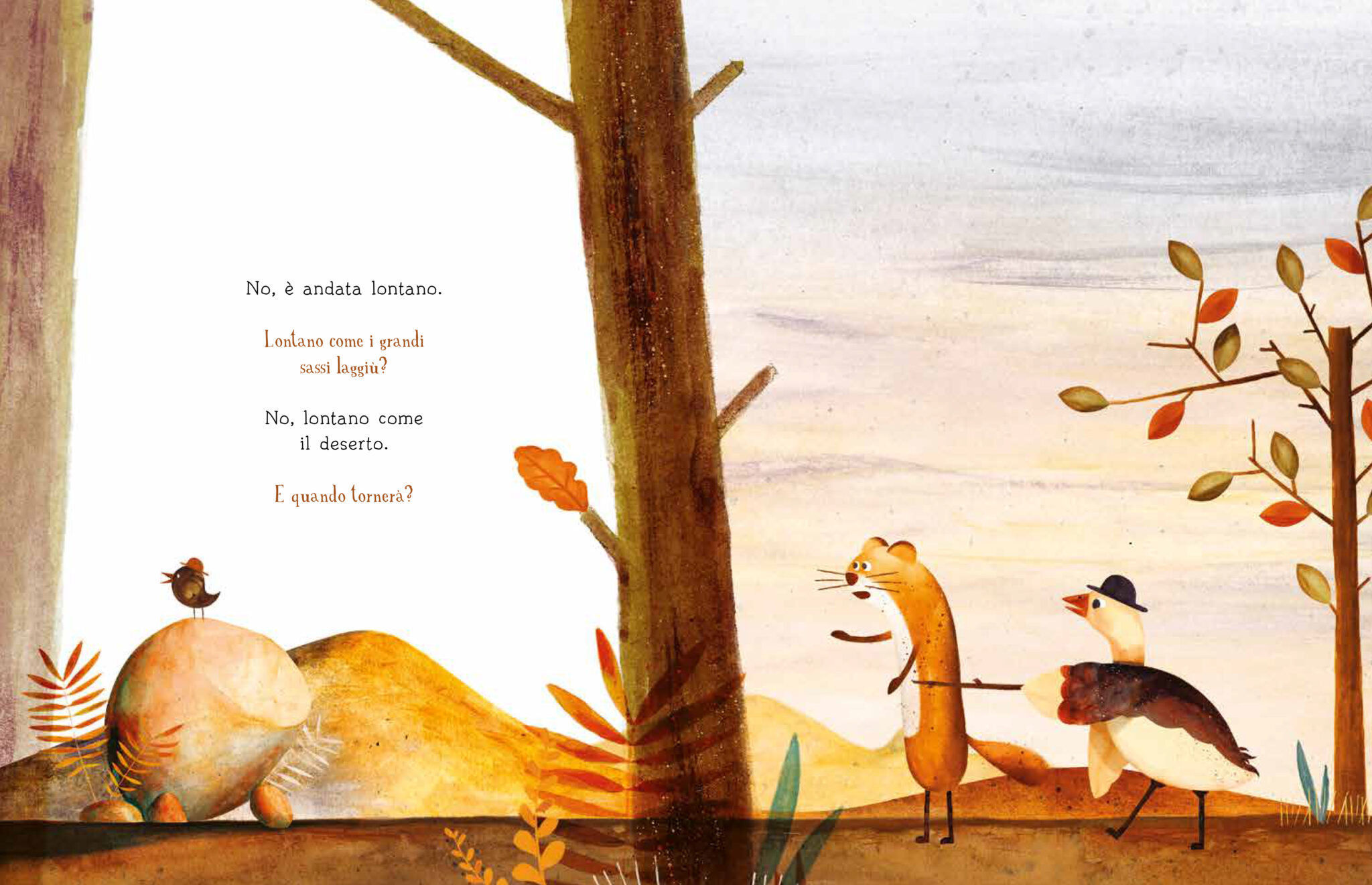 La donnola Nic è triste, molto triste: la sua adorata compagna, Mira, provetta pescatrice di rane, è partita. Non è uscita a fare la spesa, se ne è andata lontano come il deserto e forse non tornerà più. O almeno Nic così crede. Era arrabbiata per colpa di una volpe.
