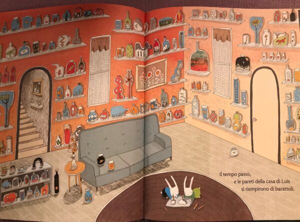 Da quel giorno Iris e Luis cercano insieme e collezionano cose difficili da stringere tra le mani, come gli arcobaleni o le meraviglie delle stagioni. Paiono invincibili e le pareti della casa di Luis si riempiono di mille barattoli.