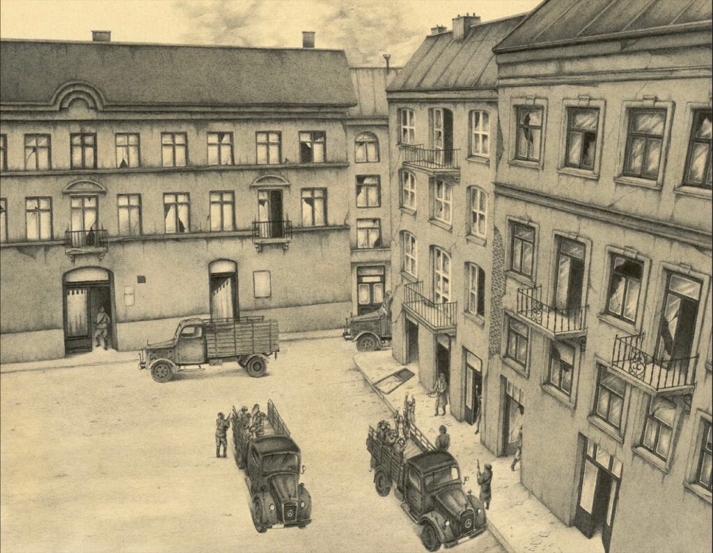 “Si presero Symchae e Süss, la vedova Ceymach e i gemelli Kierszenbaum. Quando li sentii arrivare, e gridare, corsi subito a casa degli Zytomirski. I vicini mi dissero che avevano preso i genitori di Henio, ma nessuno aveva visto lui. Mancavano altri nove bambini”.