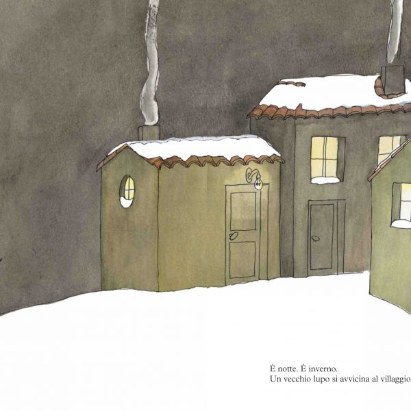 In un paesaggio innevato, sullo sfondo grigio di un cielo notturno, un vecchio lupo bussa alla porta di una gallina. Tiene sulla schiena un grosso sacco. La gallina apre la porta, il lupo le chiede ospitalità… Con garbo e intelligenza, il lupo riuscirà a ottenere una zuppa che sfamerà l’intero villaggio durante una grande cena in cui i pregiudizi lasceranno spazio a un nuovo senso di amicizia. Anche qui sentimenti potenti.