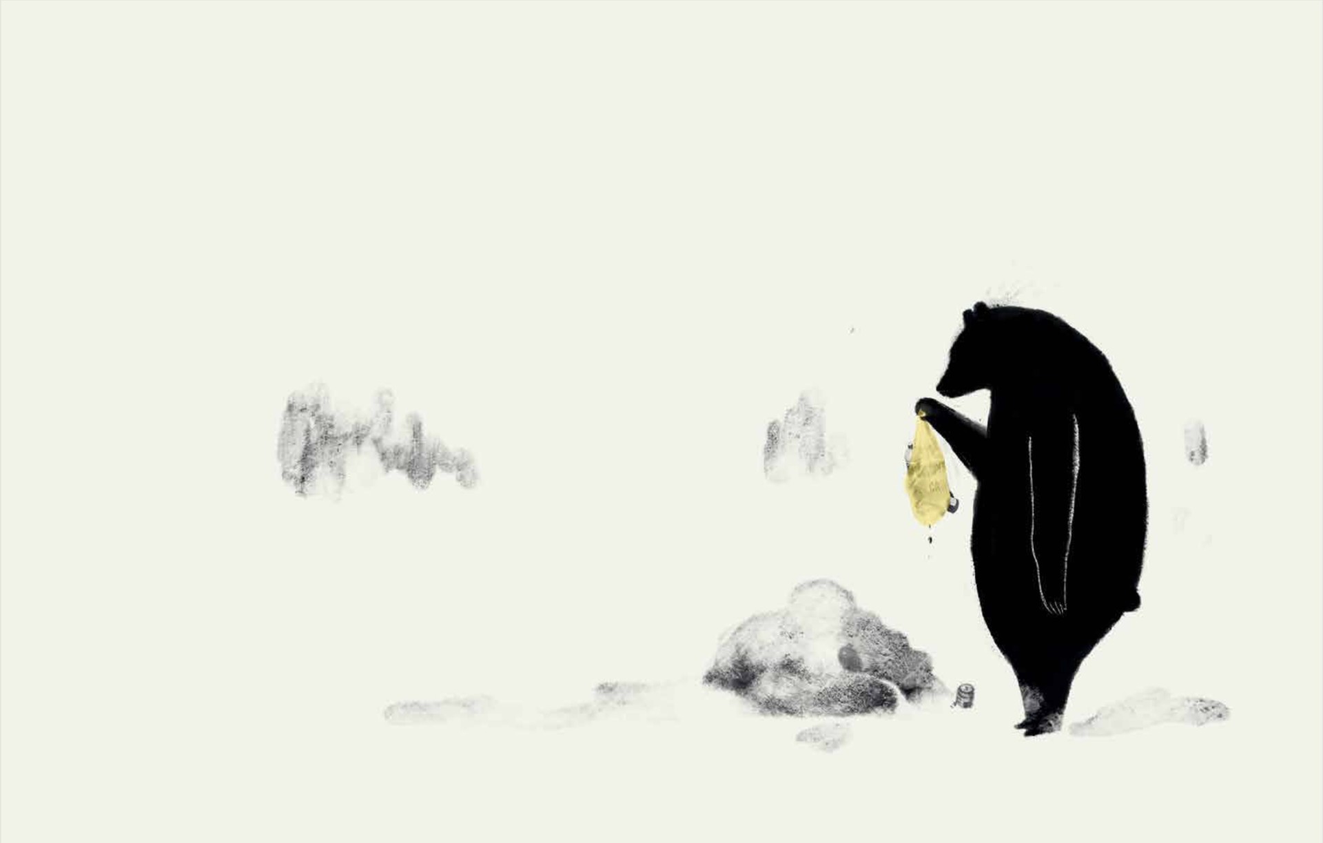 Dopo la prima interazione di Ö con la spazzatura – tracce impunite dell’uomo che sovrastano le orme del nostro amico – l’orso è deluso, ma soprattutto spaventato e inquietato, in quanto percepisce che qualcosa più forte di lui sta per arrivare.
