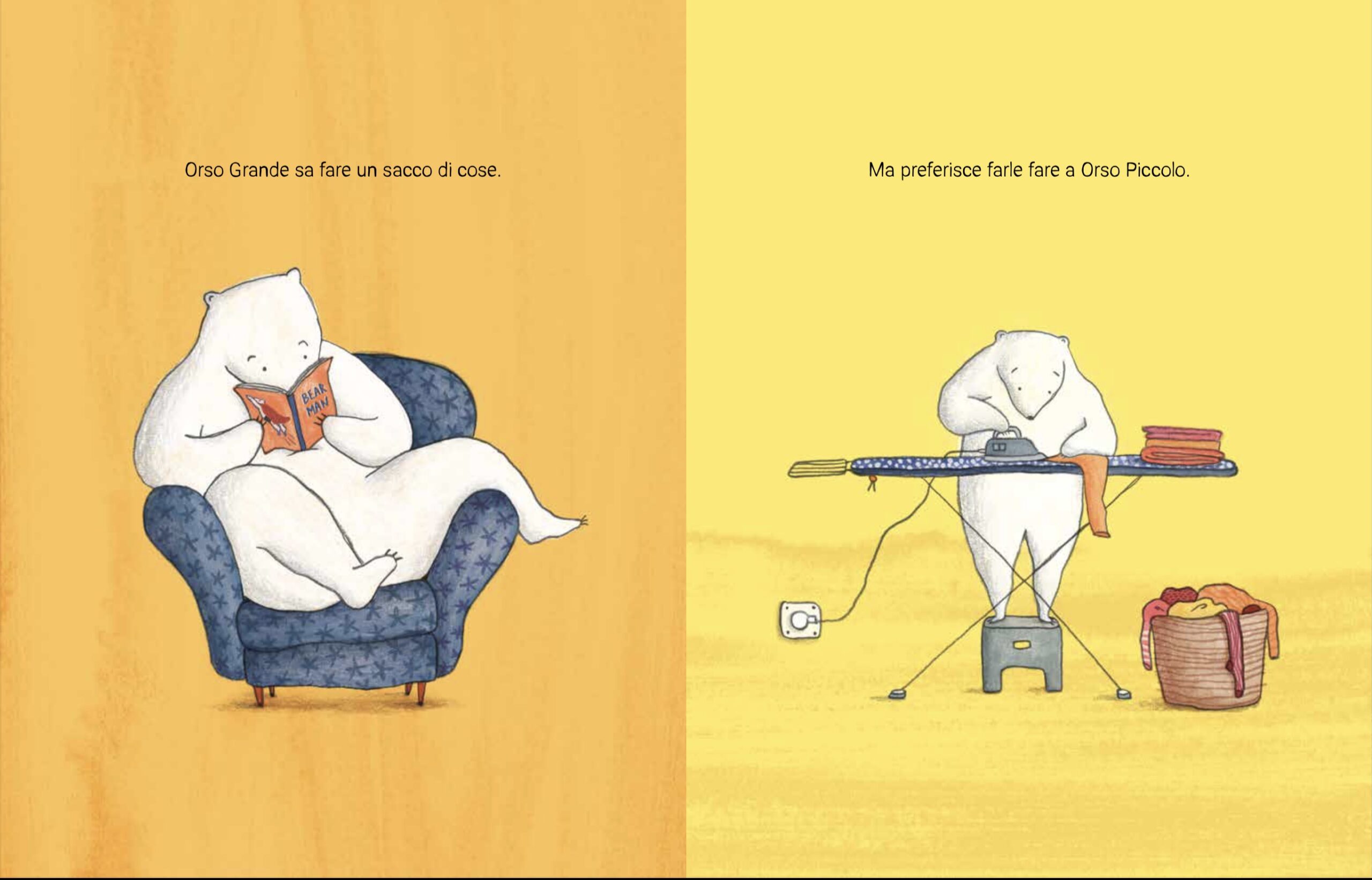 Nella vita ci sono sempre tantissime cose da fare, orso grande è furbo e lo sa, ma ha trovato una soluzione: le fa fare sempre ad orso piccolo.