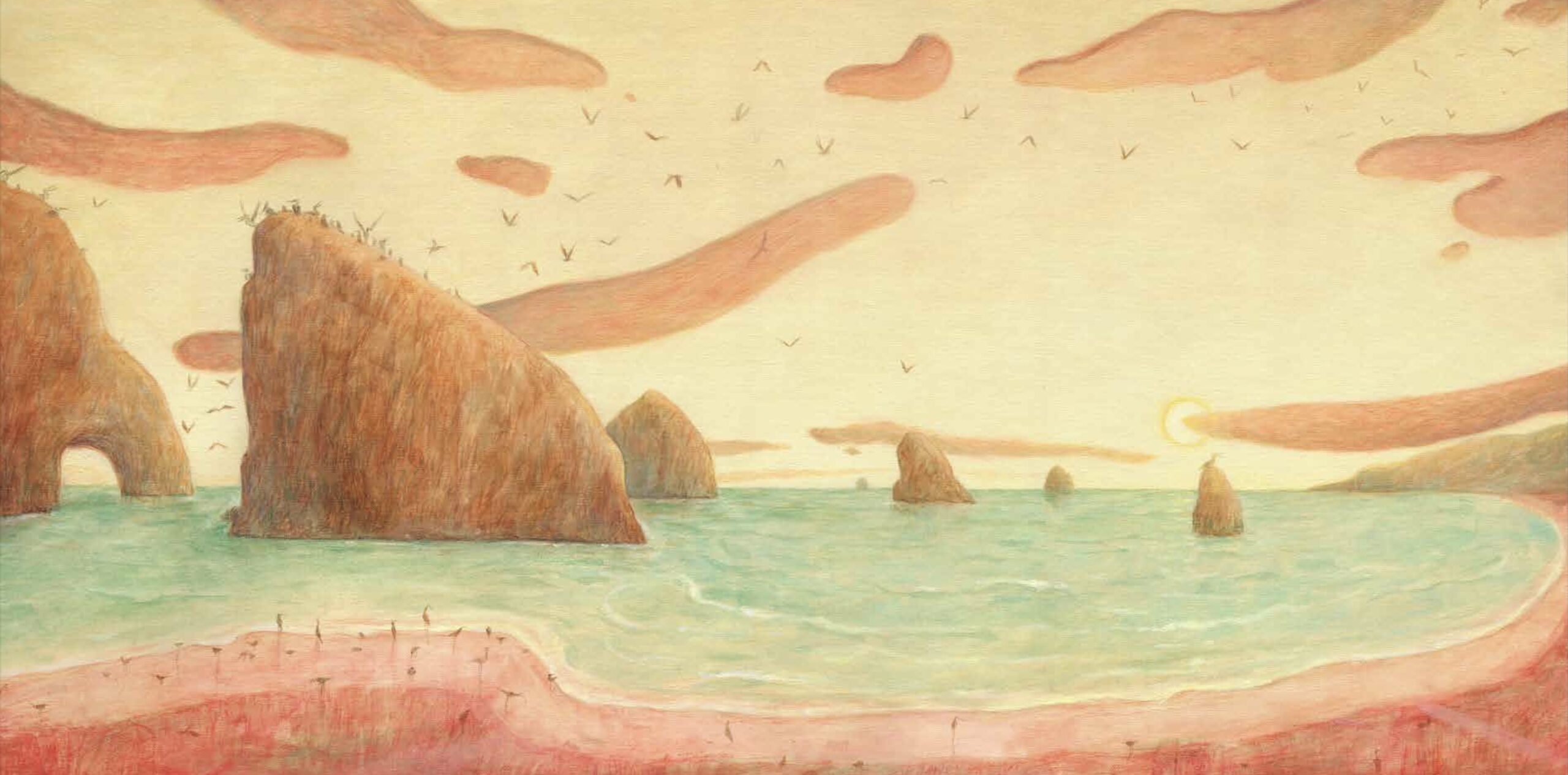 Deserti e faraglioni abitati da pellicani, cielo limpido che libera la luce del sole e i pensieri , pensieri che diventano liquidi e si uniscono con le onde, in un abbraccio infinito.