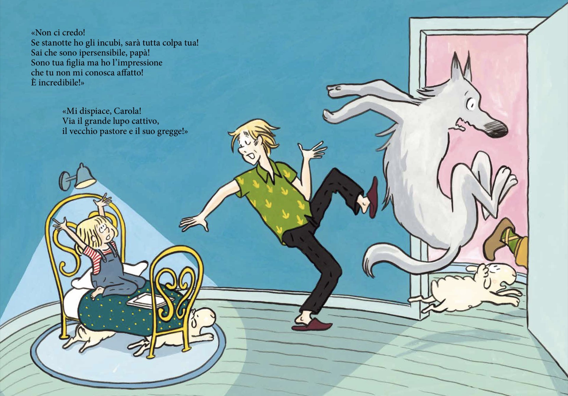 Allora una storia con un grande lupo cattivo e affamato che non mangia da tre giorni? Non se ne parla! Suo padre dovrebbe sapere che lei è ipersensibile e ama gli animali! Via il lupo, allora.