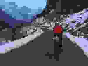 Il Monviso è una montagna che spicca dalla pianura con veemenza. Dal suo grembo sgorga il ‘nostro’ Grande Fiume. Non esiste una vallata che ti accompagna dolcemente al suo picco. Affrontarne la salita significa restare subito senza fiato. La scalata ciclistica del ‘Re di Pietra’ mette immediatamente alla prova la tenacia dei ragazzi, che dopo 600 km sulle gambe, inanellati in soli due giorni, devono aggredire una pendenza continuamente crescente da Saluzzo fino al Pian della Regina. Di fronte a loro infine una sbarra, sette gradi sotto zero e un fondo stradale in ombra, perciò ghiacciato. Il saggio Luca Agosti fa desistere il gruppo, intenzionato a spingersi fino al Pian del Re dove il Po, timido, zampilla. L’abbigliamento inadeguato, la temperatura molto rigida e il tramonto imminente avrebbero reso la discesa pericolosa, dato il manto stradale poco visibile e scivoloso.