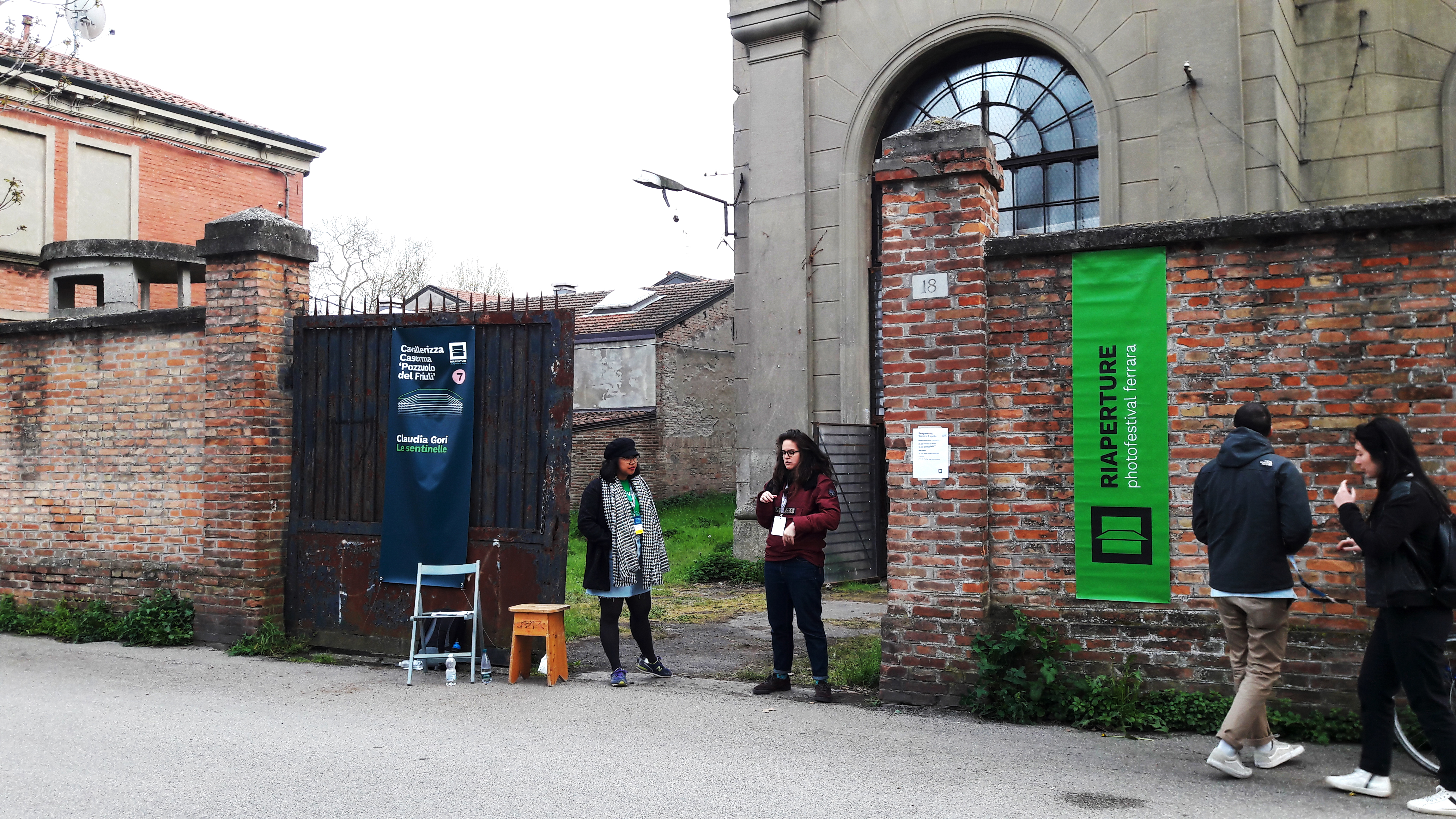 Ficcare il naso oltre i muri, oltre i portoni sbarrati e chiusi da chiavistelli arrugginiti, scendere in taverna o salire in cima a scaloni e trovarci dentro delle mostre di fotografie con immagini incorniciate alle pareti, appese con funi all’aperto o con le catenelle che scendono dal soffitto. È un’esperienza di scoperta, una caccia al tesoro di spazi e contenuti quella che offre ai suoi partecipanti ‘Riaperture photofestival Ferrara’, organizzato per il terzo anno dall’associazione Riaperture con la direzione artistica di Giacomo Brini. “Sono millecinquecento i visitatori che hanno percorso la città nel primo weekend per le mostre e gli incontri”, spiega Fabio Zecchi che si occupa della comunicazione dell’evento. E ora – da venerdì 5 a domenica 7 aprile 2019 – si potranno tornare a vedere le diciassette esposizioni d’autore in sette spazi diversi di Ferrara (visitabili dalle 10 alle 19), si potrà andare ad ascoltare altri incontri con fotografi o giornalisti, partecipare a laboratori e anche agli appuntamenti mattutini di caffè-fotografici.