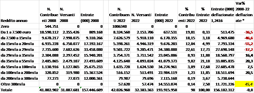 Il primo riguarda il ceto medio e alto dei dipendenti (7-8 milioni, quasi un quarto dei contribuenti) che vede crescere il suo contributo al totale delle imposte sul reddito (73% del totale).
