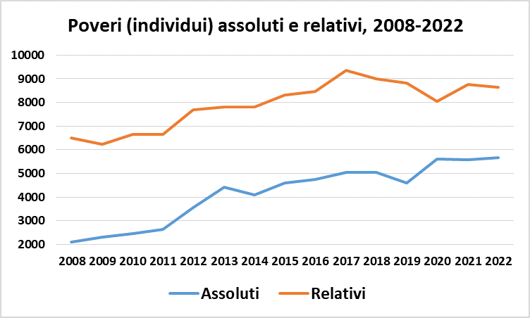 Nella sanità la situazione è in peggioramento costante da 15 anni e sono ormai un terzo (41 miliardi) le spese che paghiamo per cure private…chi se lo può permettere di non aspettare mesi per le cure nei servizi pubblici. I poveri (7,6% della popolazione) invece non si curano più non potendo permettersi queste spese.