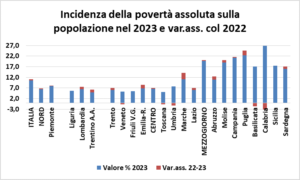 [6] Nel 2023 il reddito di cittadinanza è stato ridotto a 7 mesi per le famiglie “occupabili” e nel 2024 si vedranno probabilmente gli effetti della riduzione dell’”assegno di inclusione” (ora si chiama così) che passa da 1,4 milioni di famiglie a 700mila.