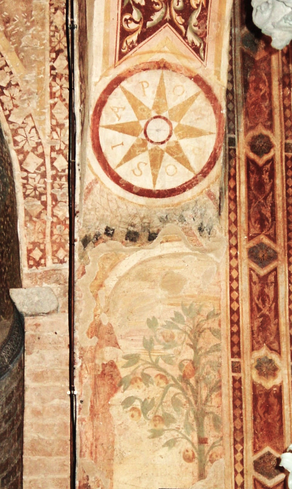Così spostandosi dal centro della navata verso quella di destra, lo sguardo vi scorse dipinta sulla colonna una stella ad otto punte già vista nelle ceramiche del nartece: la stella con la scritta tra raggio e raggio: P o m p o s i a.