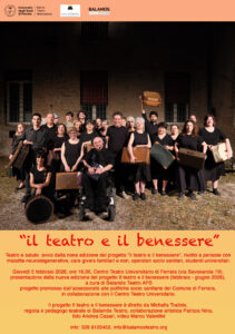 Giovedì 5 febbraio 2026, alle ore 16.00, presso il Centro Teatro Universitario di Ferrara (via Savonarola 19), ci sarà la presentazione della nona edizione (febbraio – giugno 2026) del progetto “Il teatro e il benessere, un progetto teatrale a cura di Balamòs Teatro APS rivolto a persone con malattie neurodegenerative, care givers familiari e non, operatori socio sanitari, studenti universitari, promosso dall’assessorato alle politiche socio sanitarie del Comune di Ferrara, in collaborazione con il Centro Teatro Universitario.