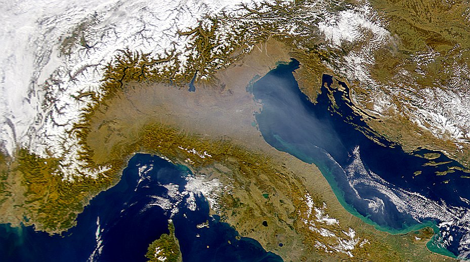 polveri sottili in Emilia-Romagna, foto satellitare