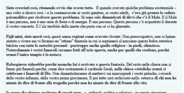 Per contro, esistono ancora persone terremotate senza casa, esistono danni considerevoli a pertinenze non finanziabili, esistono danni da liquefazione non finanziati, così come non hanno ricevuto significativi indennizzi i congiunti dei morti sul lavoro. A mio parere, gli immobili finanziati inutilmente creano danni alla collettività e hanno come caratteristica comune quella di essere posseduti da proprietari terrieri, a volte nemmeno coltivatori diretti perché residenti altrove o in capoluoghi di province più o meno limitrofe. Dunque mi sembra che il Commissario si comporti anche alla Robin Hood al contrario, il che giustifica il banner applicato alla mia abitazione. Sicuramente l’Agenzia Regionale per la Ricostruzione controllerà, prima di finanziare un’opera, che la documentazione ricevuta sia coerente con le delibere, e quindi si comporta solo da “ufficio delle carte a posto”, cioè superfluo per il bene comune, in quanto la realtà può essere diversa da quanto scritto nei documenti (e testimoniati dalle immagini, ndr) che sono una minima parte delle molte decine di casi, citati da alcuni cittadini durante quell’incontro pubblico, a cui hanno fatto seguito esposti alla Procura di Ferrara.