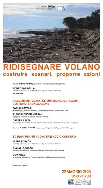 Questo seminario costituisce il primo momento ufficiale di presentazione del DISSLab_Delta and Coastal International Sustainable Strategies, un raggruppamento di ricerca avviato dal Dipartimento di Architettura, che coinvolge più competenze e settori scientifici dei vari Dipartimenti di UNIFE che lavorano insieme sui temi posti dai territori costieri e fluviali.