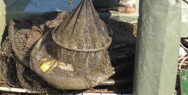 Il pesce che è stato liberato era rimasto intrappolato in cogolli con maglie di misura inferiore a quelle previste e privi di ogni contrassegno.