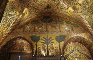 Non c’è quindi da stupirsi che quando l’antico re Ruggero decise di farsi decorare una stanza all’interno dello stupefacente e luccicante Palazzo dei Normanni, le piante tornassero così frequenti e rigogliose. Nei mosaici di sapore orientale le palme, gli aranci e altri alberi da frutto trionfano accanto a gattopardi e leoni, pavoni e cigni.