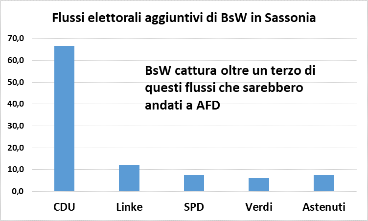 Siamo consci che sono le guerre a produrre gli sfollati: nel 2023 su 76 milioni il 90% lo erano per sfuggire a guerre. BsW si distingue da AFD perché non è razzista, ma sa che l’accoglienza è vera se si traduce in “casa e lavoro”, altrimenti si traduce in schiavismo e caporalato e lotta tra poveri. In Italia abbiamo oltre 2 milioni di lavoratori irregolari in agricoltura (non censiti) di cui 200mila sotto caporalato (fonte: Osservatorio Placido Rizzotto, report 2023). Ma c’è poi una serie infinita di lavoratori invisibili ricattati dal mancato permesso di soggiorno: muratori, badanti, etc. che creano quella che Ricolfi ha chiamato una “società servile di massa” che si basa sullo sfruttamento di questi immigrati. Senza immigrazione legale e controllata (e proporzionata alle possibilità di vera accoglienza, in modo che si traduca in “casa e lavoro”) è impossibile stroncare il nuovo schiavismo. Significa cambiare la legge Bossi-Fini, imparare da chi ha fatto buona accoglienza nel mondo, facendo diventare l’immigrazione una opportunità per tutti (nativi e immigrati). Ma la possibilità di dare casa e lavoro anche per un efficiente paese come la Germania ha dei limiti e quando l’immigrazione li supera, diventa ingestibile, crea non solo conflitti sociali ma un abbassamento dei salari delle fasce più povere e degli immigrati di prima generazione. E ciò spiega perché molti elettori di origine turca votano in massa BsW, la quale ha raccolto voti da tutti gli altri partiti e ha bloccato l’emorragia verso AFD che senza BsW avrebbe avuto un risultato ancora maggiore.