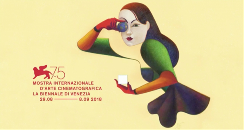 Su quello di Venezia 75 (2018), invece, il primo della serie, campeggia una figura femminile che guarda, misteriosa, attraverso un obiettivo che assume le sembianze della Terra. “Penso che un manifesto debba avere qualcosa di intrigante, che attira l’occhio, che attira il pensiero, ma senza svelare troppo. Che ci sia un enigma, una sorta di mistero da risolvere. Dopo varie prove è venuta fuori quest’idea di una ragazza”, ha spiegato l’artista, “di questo personaggio femminile dal viso molto grafico, non realistico che guarda con un’espressione abbastanza seria attraverso un obiettivo. E al posto di questo obiettivo c’è la Terra, il pianeta Terra, per simboleggiare lo sguardo su di noi. Poi c’è il quadrato bianco, e mi sembra che questo abbinamento sia un incontro felice, perché ci si domanda: cos’è il quadrato bianco? Credo che sia naturale pensare allo schermo del cinema, lo schermo bianco. Lo sguardo sul pianeta, lo sguardo sulla realtà, deve passare per questo mezzo, deve essere filtrato attraverso lo schermo”.
