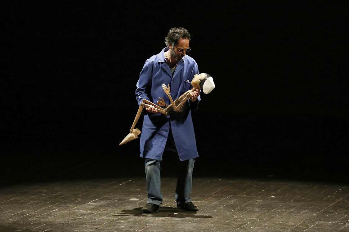 Paolo Garbini nei panni di Geppetto in “Chi ha rubato il naso a Pinocchio”, Ferrara, 15 maggio 2018 (foto Valerio Pazzi)