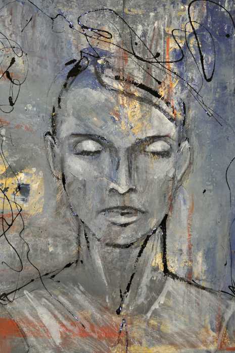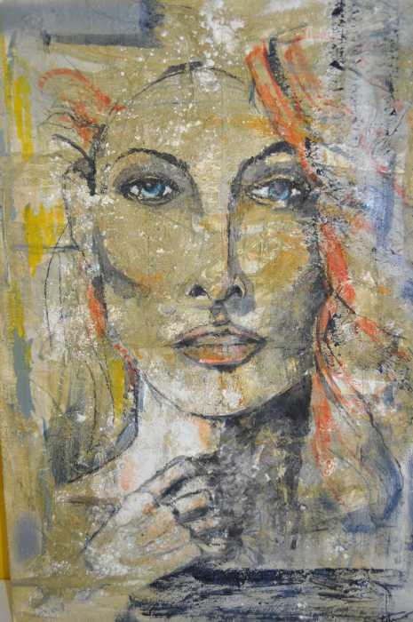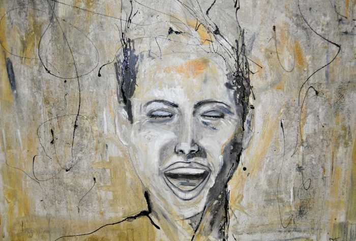 Un po’ di tutto, dagli acrilici al gesso, dall’acquarello alla vernice. Negli ultimi lavori sto usando una vernice quasi bituminosa e della colla, perché voglio che i volti emergano dalla tela, anzi dal muro perché ho ricoperto la tela di gesso e colla. Vorrei arrivare a fare quasi dei piccoli graffiti o piccole sculture… vedremo cosa salterà fuori.