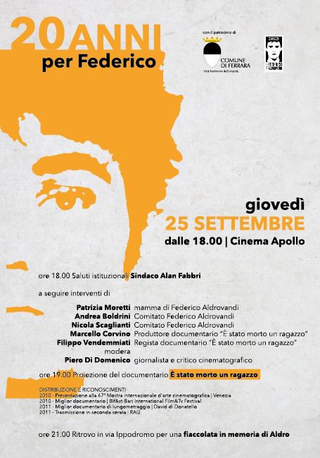 In copertina: Federico Aldrovandi, foto Abuondiritto Onlus