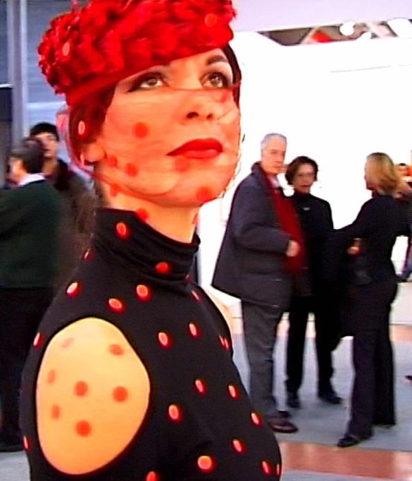 Rivelatori, e anche divertenti, i video di Liuba, che documentano le performance realizzate in spazi pubblici davanti a un pubblico ignaro, che diventa inconsapevolmente parte dell’opera. Un’applicazione dell’idea di contaminazione tra mondo artistico e mondo reale. Mi ha ricordato l’opera dell’artista giapponese Yayoi Kusama (classe 1929), che – come racconta lei stessa in un video esposto al Museo Louisiana di Copenhagen – personalizza interi ambienti fisici, dalle pareti agli arredi, passando per abiti e accessori, “mettendo i pois a tutto”.