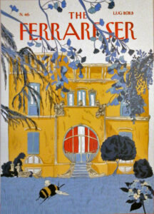 La dimora è stata anche protagonista in copertina nell’illustrazione stilizzata del progettista grafico Corradino Janigro, che la avvolge con il mantello della gatta che dà il titolo al romanzo di Mirella Bonora (Il passo della gatta, Argentodorato edizioni, Ferrara, 2023). L’illustratrice Irene Chiapatti la incornicia splendidamente in un campo lilla, complementare alla tonalità ocra con cui tinge per l’edificio di un’altra copertina: la numero 46 della rivista social-virtuale di The Ferrareser di luglio 2023.