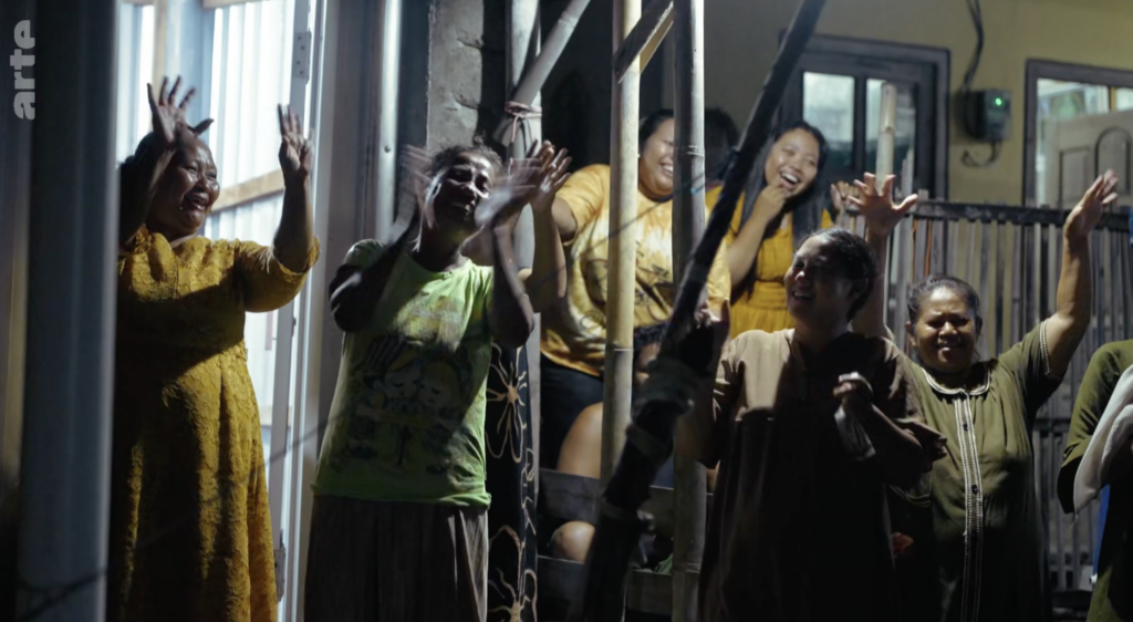 Si ritorna così allo snaturamento di grandi categorie come sostenibilità o resilienza, utilizzate ipocritamente dal neoliberalismo coloniale per giustificare nuove forme di rapina del territorio[2]. Se la resilienza diventa uno dei fondamenti di una politica territoriale, questo non può avvenire attraverso uno spostamento di responsabilità: da chi ha determinato, con azioni interessate e sbagliate, un processo di erosione costiera, a chi – la popolazione locale – deve farsi carico delle conseguenze, rialzando le case, convivendo con l’acqua e reinventandosi una socialità. Come cercano di fare le donne nella festa del villaggio di Timbulsloko, le cui risate non cancellano lo sguardo sconsolato di chi sta perdendo la propria vita.